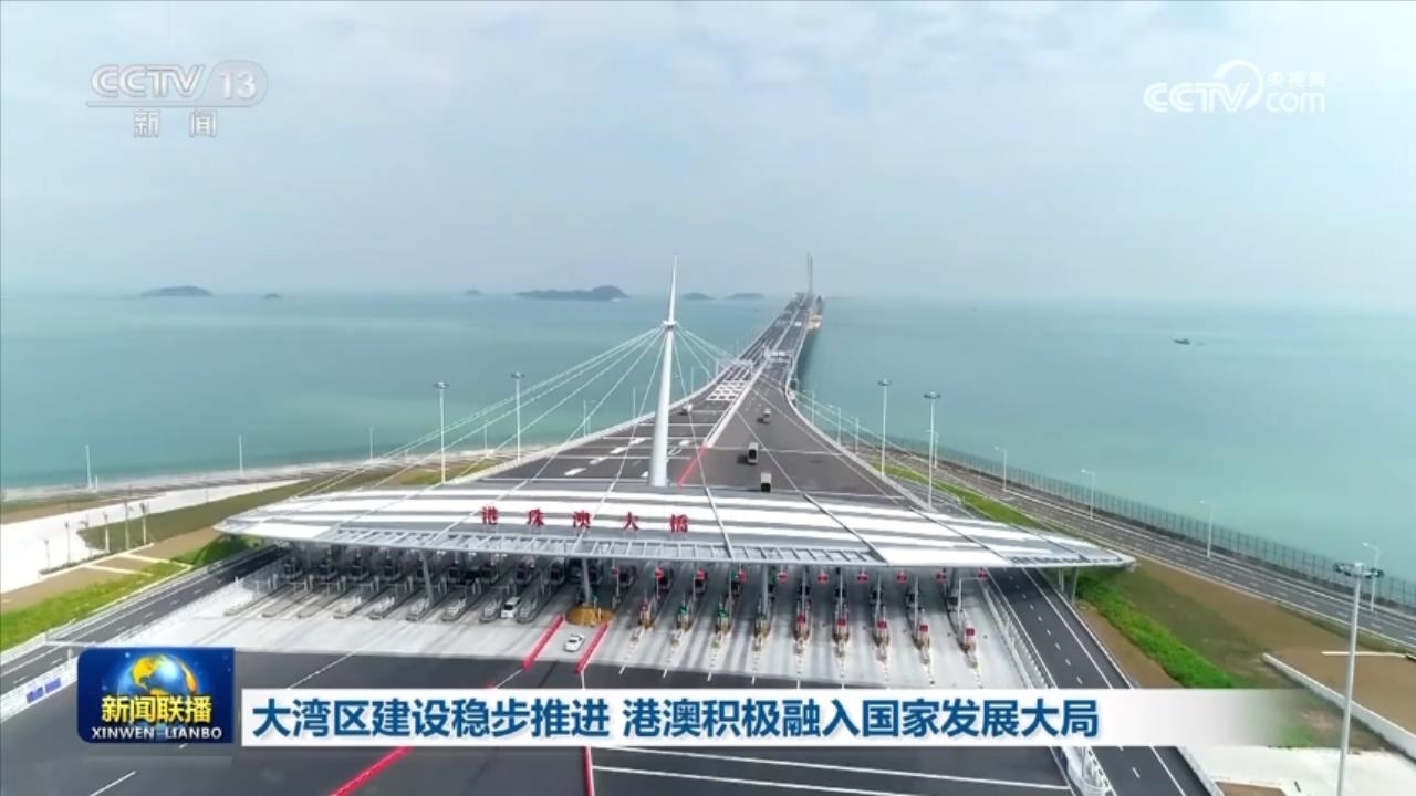 央視網(wǎng)消息(新聞聯(lián)播):粵港澳大灣區(qū)建設(shè)穩(wěn)步推進(jìn),香港、澳門積極融入國家發(fā)展大局。