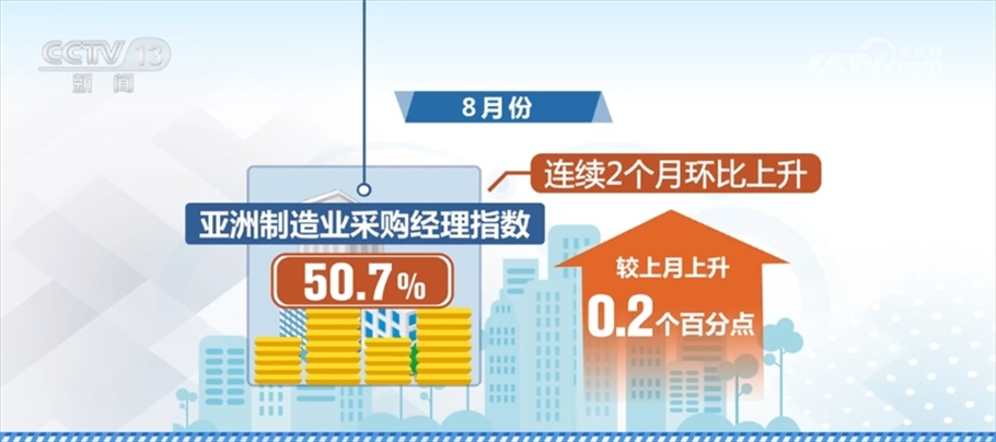 8月份,亞洲制造業(yè)采購經(jīng)理指數(shù)為50.7%,較上月上升0.2個百分點,連續(xù)2個月環(huán)比上升,顯示亞洲制造業(yè)延續(xù)平穩(wěn)增長趨勢。從主要國家看,中國制造業(yè)采購經(jīng)理指數(shù)連續(xù)三個月上升,向好回升勢頭進一步鞏固,中國制造業(yè)呈現(xiàn)持續(xù)穩(wěn)定恢復(fù)趨勢,為亞洲制造業(yè)的平穩(wěn)增長提供重要支撐。