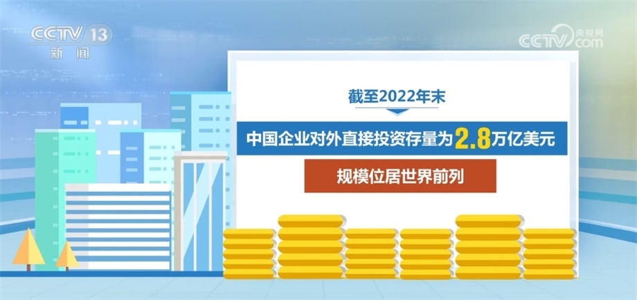 截至2022年末,中國企業(yè)對外直接投資存量為2.8萬億美元,規(guī)模位居世界前列。近年來,中資企業(yè)向東道國年均繳納各種稅費超500億美元,拉動當?shù)鼐蜆I(yè)近250萬人。