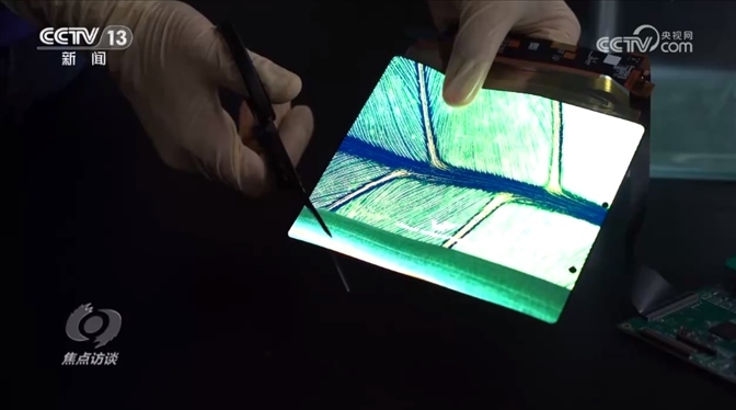 這是一家新型顯示領(lǐng)域科技領(lǐng)軍企業(yè)柔性O(shè)LED高端生產(chǎn)線的實驗室。企業(yè)科研人員向記者展示了他們最新的顛覆性技術(shù)創(chuàng)新成果。