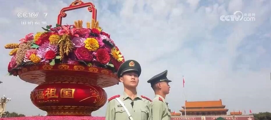在北京,天安門廣場(chǎng)內(nèi)祝福祖國的巨型花籃吸引著眾多游客前來觀賞拍攝。武警官兵在完成好巡邏執(zhí)勤任務(wù)的同時(shí),協(xié)助工作人員進(jìn)行游客疏導(dǎo)也成為一項(xiàng)重要的工作。