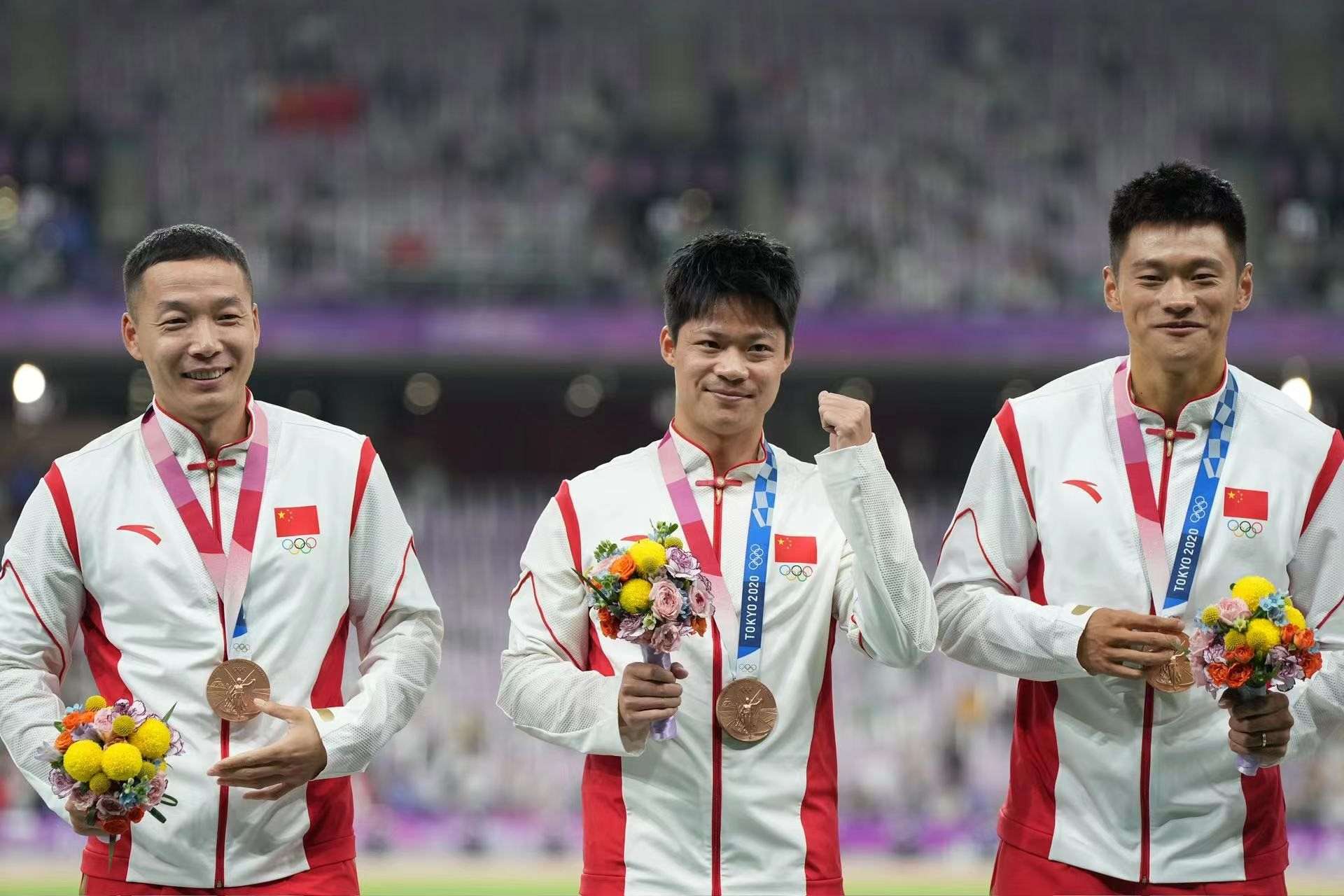 蘇炳添、謝震業(yè)、吳智強(qiáng)、湯星強(qiáng)參加了東京奧運(yùn)會田徑男子4×100米接力決賽,并在比賽中第四個(gè)沖過終點(diǎn)。去年2月,國際體育仲裁法庭裁定英國運(yùn)動員烏賈在東京奧運(yùn)會期間違反了反興奮劑條例,取消英國隊(duì)男子4x100米接力成績并收回所獲銀牌,中國男子4x100米接力隊(duì)因此遞補(bǔ)獲得銅牌。這是中國男子4x100米接力隊(duì)首次在奧運(yùn)會上獲得獎(jiǎng)牌。