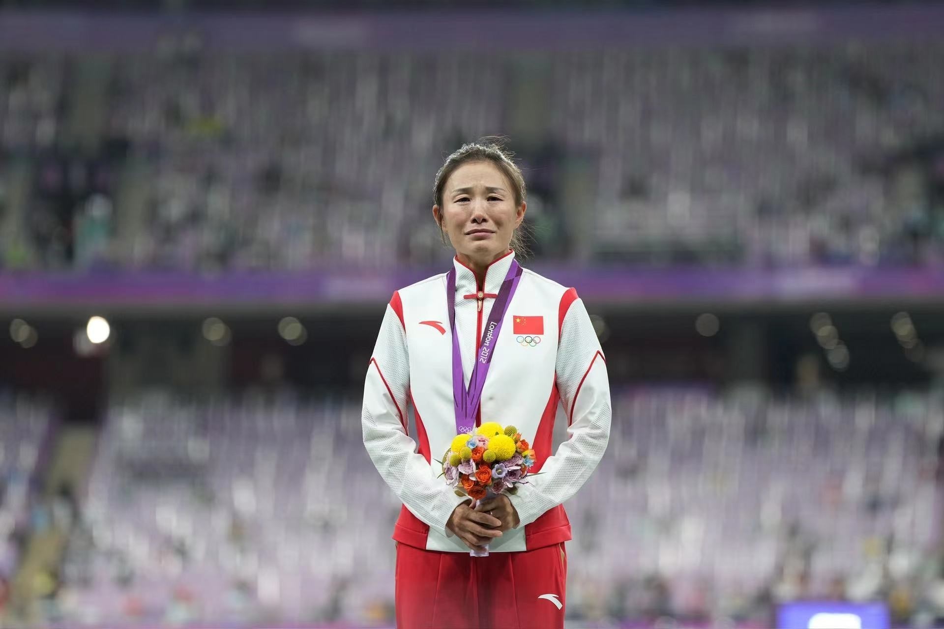 補(bǔ)發(fā)現(xiàn)場,首先頒發(fā)的是男子4×100米接力銅牌。四位中國小伙子笑著走上銅牌領(lǐng)獎(jiǎng)臺,接受頒獎(jiǎng)。隨后的競走頒獎(jiǎng)儀式上,在三位得獎(jiǎng)運(yùn)動員獲頒獎(jiǎng)牌后,《義勇軍進(jìn)行曲》奏響,三面五星紅旗冉冉升起,切陽什姐眼中涌動著晶瑩的淚花。