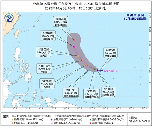 另外,今年第15號臺風(fēng)“布拉萬”(Bolaven)于昨天(10月7日)下午生成,今天早晨5點(diǎn)鐘位于關(guān)島塞班東南方向約990公里的西北太平洋洋面上,就是北緯9.9度、東經(jīng)153.0度,中心附近最大風(fēng)力有8級(18米/秒),中心最低氣壓為998百帕,七級風(fēng)圈半徑150-200公里。
