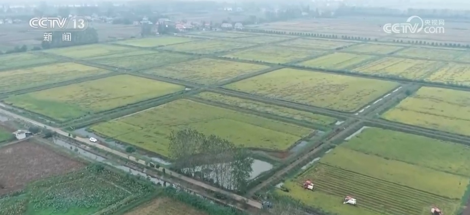 在湖南省常德市鼎城區(qū),連片的中稻迎來豐收。種糧大戶陳元普調(diào)度了3臺收割機前來搶收,很快30多畝稻田就完成了收割。