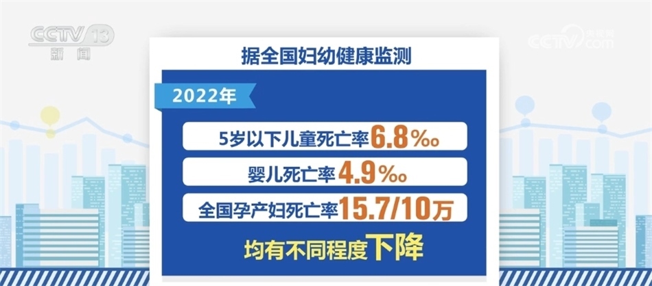 在婦幼健康方面,2022年我國孕產(chǎn)婦產(chǎn)前檢查率97.9%,產(chǎn)后訪視率96.5%。與上年比較,產(chǎn)前檢查率和產(chǎn)后訪視率均有提高。2022年全國住院分娩率為99.94%,基本實現(xiàn)全部住院分娩。據(jù)全國婦幼健康監(jiān)測,2022年,我國5歲以下兒童死亡率6.8‰,嬰兒死亡率4.9‰,全國孕產(chǎn)婦死亡率為15.7/10萬,均有不同程度下降。