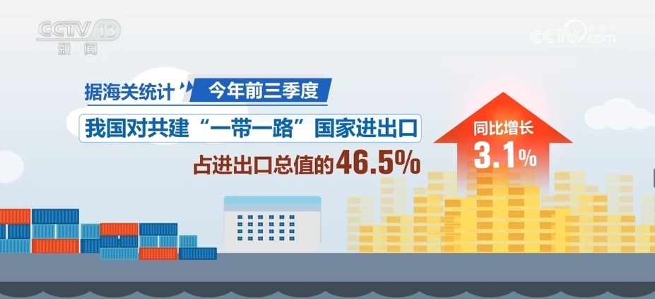 據(jù)海關統(tǒng)計,2023年前三季度,我國對共建“一帶一路”國家進出口同比增長3.1%,占進出口總值的46.5%。