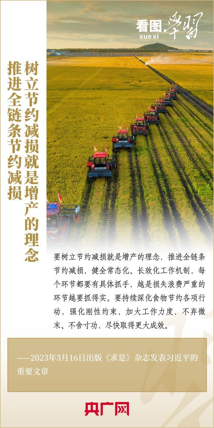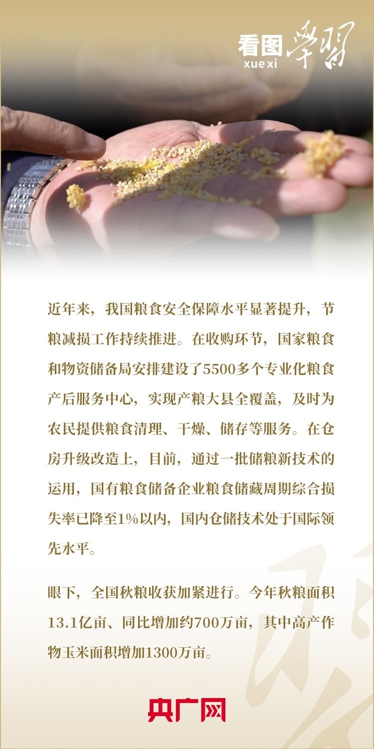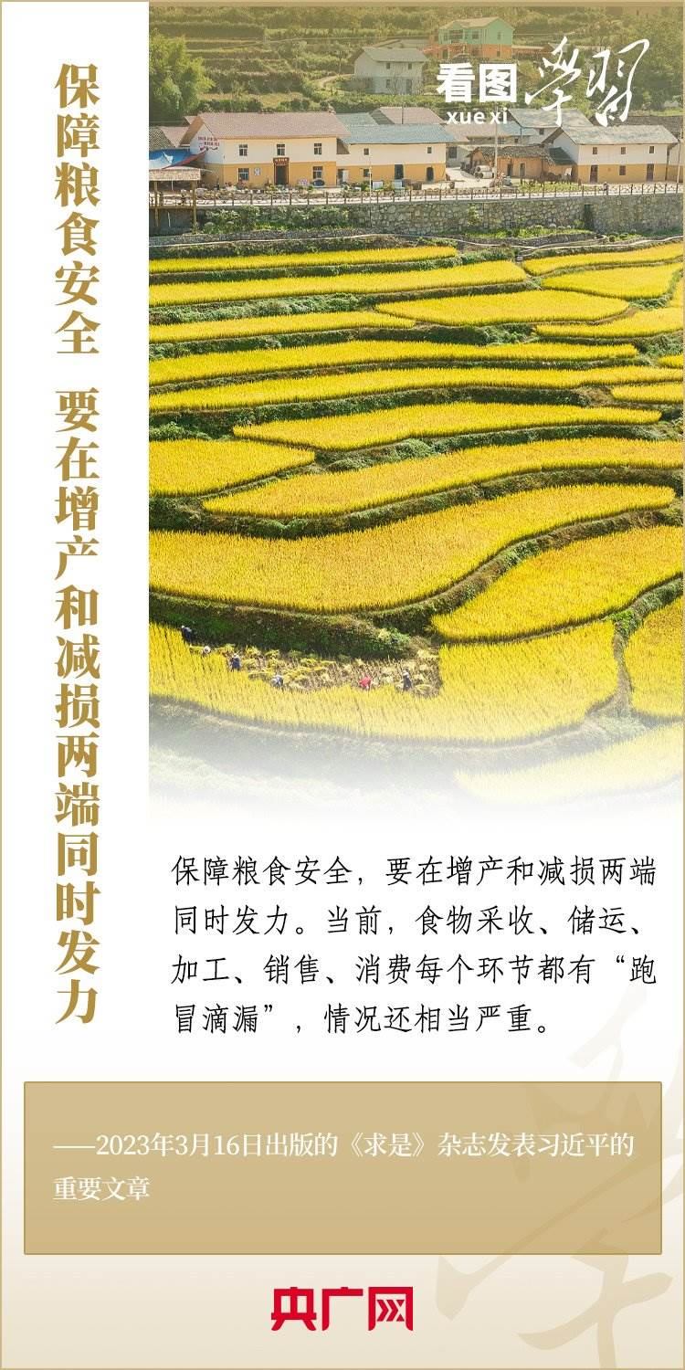 糧食安全是“國(guó)之大者”。黨的十八大以來(lái),習(xí)近平總書記在地方考察調(diào)研期間,常常走進(jìn)田間地頭,看長(zhǎng)勢(shì)、問(wèn)收成,多次強(qiáng)調(diào)“中國(guó)人的飯碗任何時(shí)候都要牢牢端在自己手中”,“保障糧食安全,要在增產(chǎn)和減損兩端同時(shí)發(fā)力”。讓14億多人吃飽吃好,總書記始終念茲在茲。今天是世界糧食日,一起來(lái)學(xué)習(xí)!