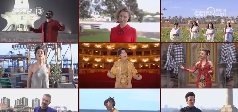 在中國(guó)的春節(jié)聯(lián)歡晚會(huì)上,來(lái)自9個(gè)共建“一帶一路”國(guó)家的表演者云端相聚,和著中國(guó)藝術(shù)家的伴奏共唱《一帶繁花一路歌》。
