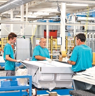 中國家電企業(yè)海信集團(tuán)位于塞爾維亞瓦列沃的冰箱工廠今年9月正式投產(chǎn)運(yùn)營。圖為工人在生產(chǎn)線上忙碌。本報記者 劉仲華攝