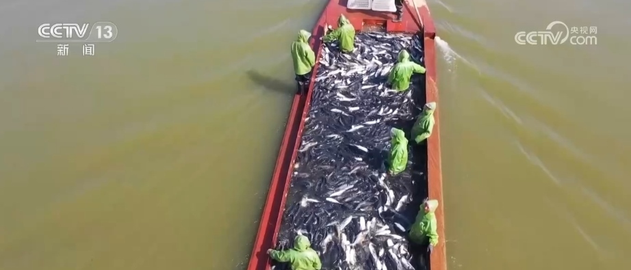 據(jù)了解,大明湖水域面積達到12.8萬畝,是江西第二大的內(nèi)陸湖泊,十分適合發(fā)展水產(chǎn)養(yǎng)殖。養(yǎng)殖的品種以青魚、草魚、鰱魚、鳙魚“四大家魚”為主。秋捕開始時,漁業(yè)工人用特制的漁網(wǎng)將魚兒驅(qū)趕到特制的長條通道里,再逐步收起漁網(wǎng),工人們在另一端仔細挑選活魚的品種和大小,體型不達標的魚會被挑出來,放回湖中繼續(xù)養(yǎng)。據(jù)現(xiàn)場工人介紹,2023年因為風調(diào)雨順,大明湖迎來一個豐收年,捕獲上來的活魚一般都在4斤以上,全年總產(chǎn)量預(yù)計超過200萬公斤。