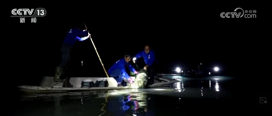 在東營黃河口,從中秋節(jié)到現(xiàn)在,每天凌晨養(yǎng)蟹工人都要起籠收獲大閘蟹。