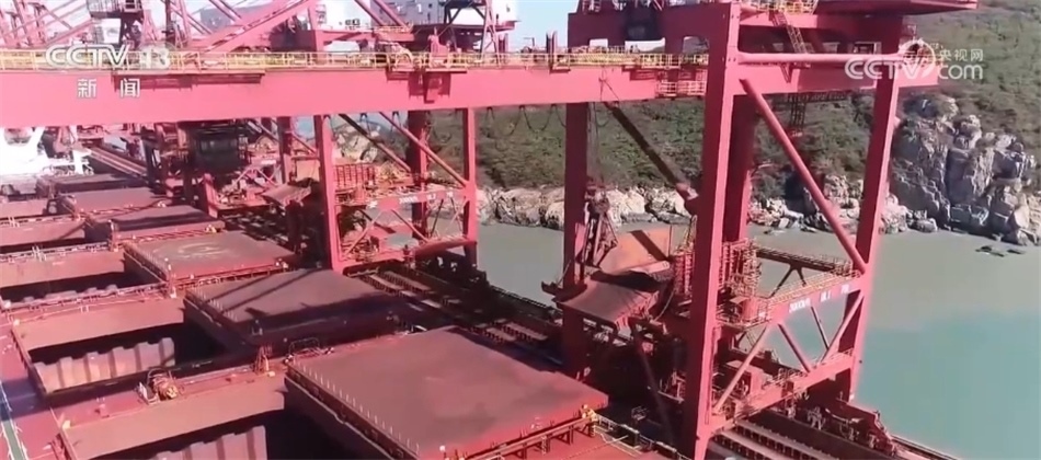 記者來到寧波舟山港鼠浪湖礦石中轉(zhuǎn)碼頭時,一個個抓斗正忙著從巨輪上接卸礦石。今年以來,40萬噸礦船是這里的???。作為大宗物資集散地,寧波舟山港承擔了長江經(jīng)濟帶45%的鐵礦石、90%以上的油品中轉(zhuǎn)量。前三季度,寧波舟山港經(jīng)營體系內(nèi)鐵礦石的接卸量超過了1億噸。