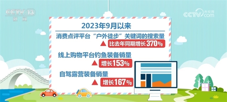 據(jù)統(tǒng)計(jì),今年九月以來(lái),消費(fèi)點(diǎn)評(píng)平臺(tái)“戶外徒步”關(guān)鍵詞的搜索量比去年同期增長(zhǎng)了370%,線上購(gòu)物平臺(tái)釣魚(yú)裝備銷(xiāo)量增長(zhǎng)153%,自駕露營(yíng)裝備銷(xiāo)量增長(zhǎng)了167%。隨著“戶外+”的新模式、新業(yè)態(tài)大量涌現(xiàn),消費(fèi)產(chǎn)品也日趨多樣化,戶外運(yùn)動(dòng)對(duì)體育產(chǎn)業(yè)的帶動(dòng)作用更加凸顯。