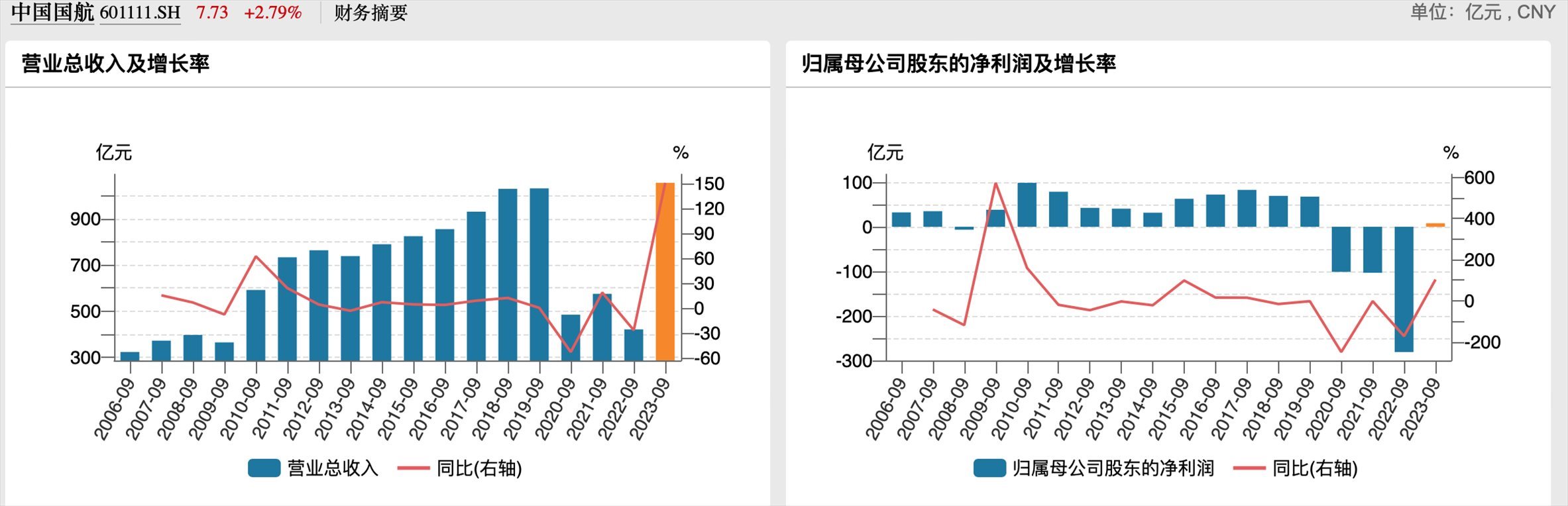 國航歷年三季度業(yè)績