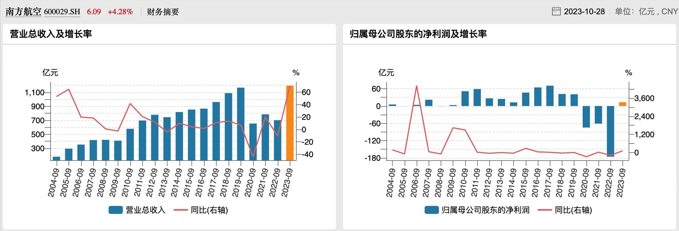 南航歷年第三季度業(yè)績