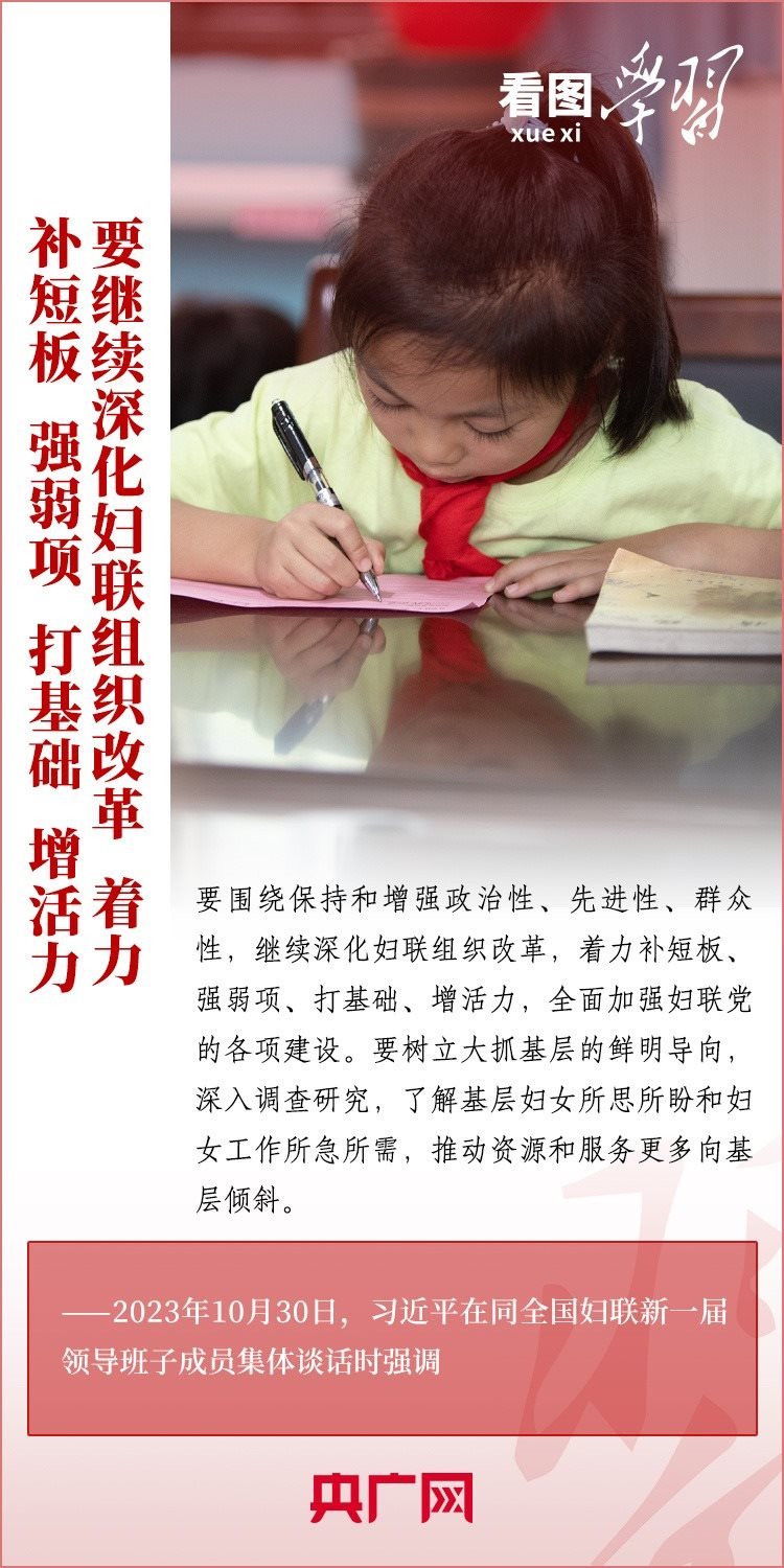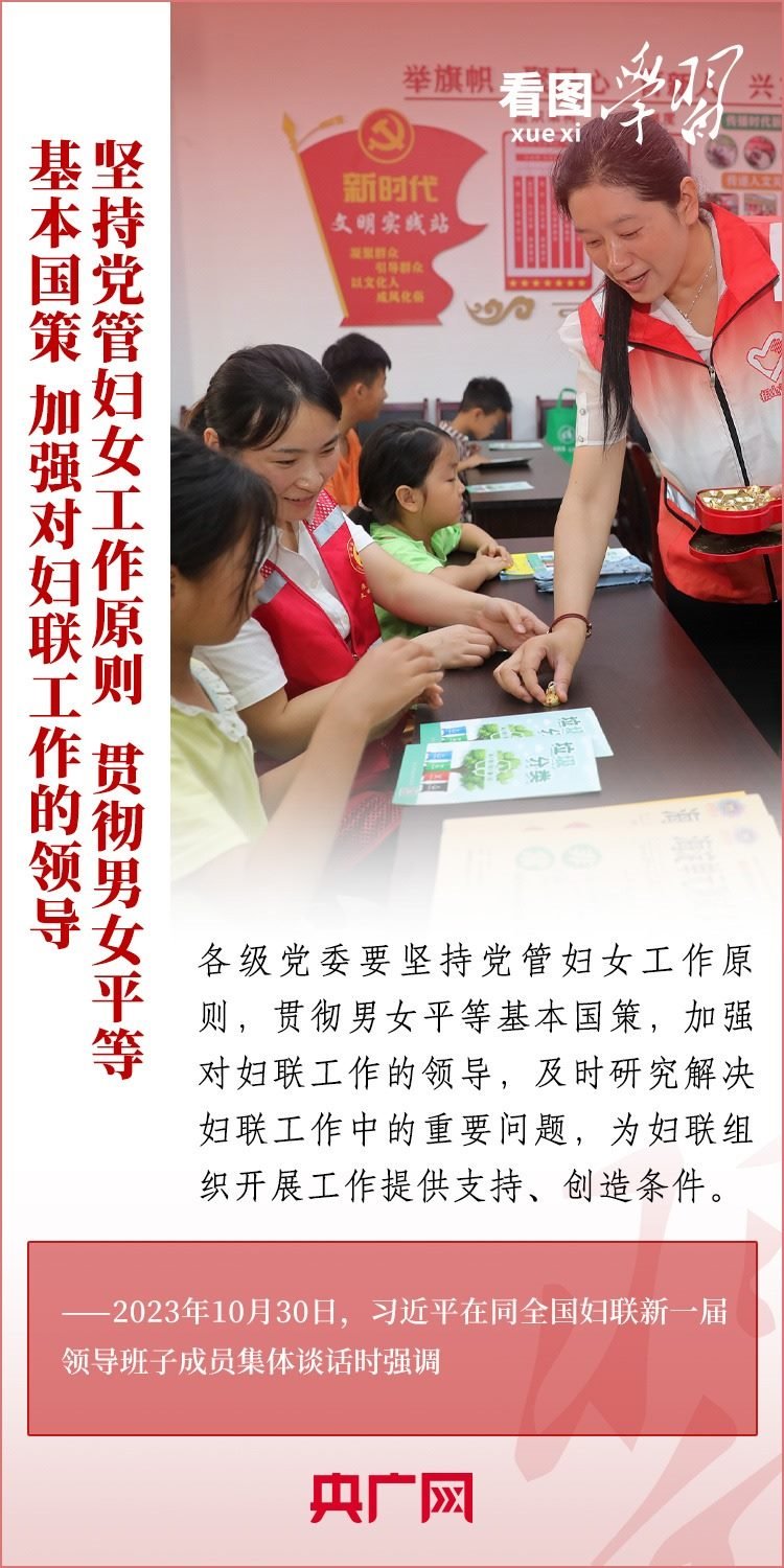 10月30日下午,習(xí)近平總書記同全國(guó)婦聯(lián)新一屆領(lǐng)導(dǎo)班子成員集體談話并發(fā)表重要講話??倳洀?qiáng)調(diào),要堅(jiān)定不移走中國(guó)特色社會(huì)主義婦女發(fā)展道路,激勵(lì)廣大婦女自尊自信、自立自強(qiáng),奮進(jìn)新征程、建功新時(shí)代,為中國(guó)式現(xiàn)代化建設(shè)貢獻(xiàn)巾幗智慧和力量。一起來學(xué)習(xí)!