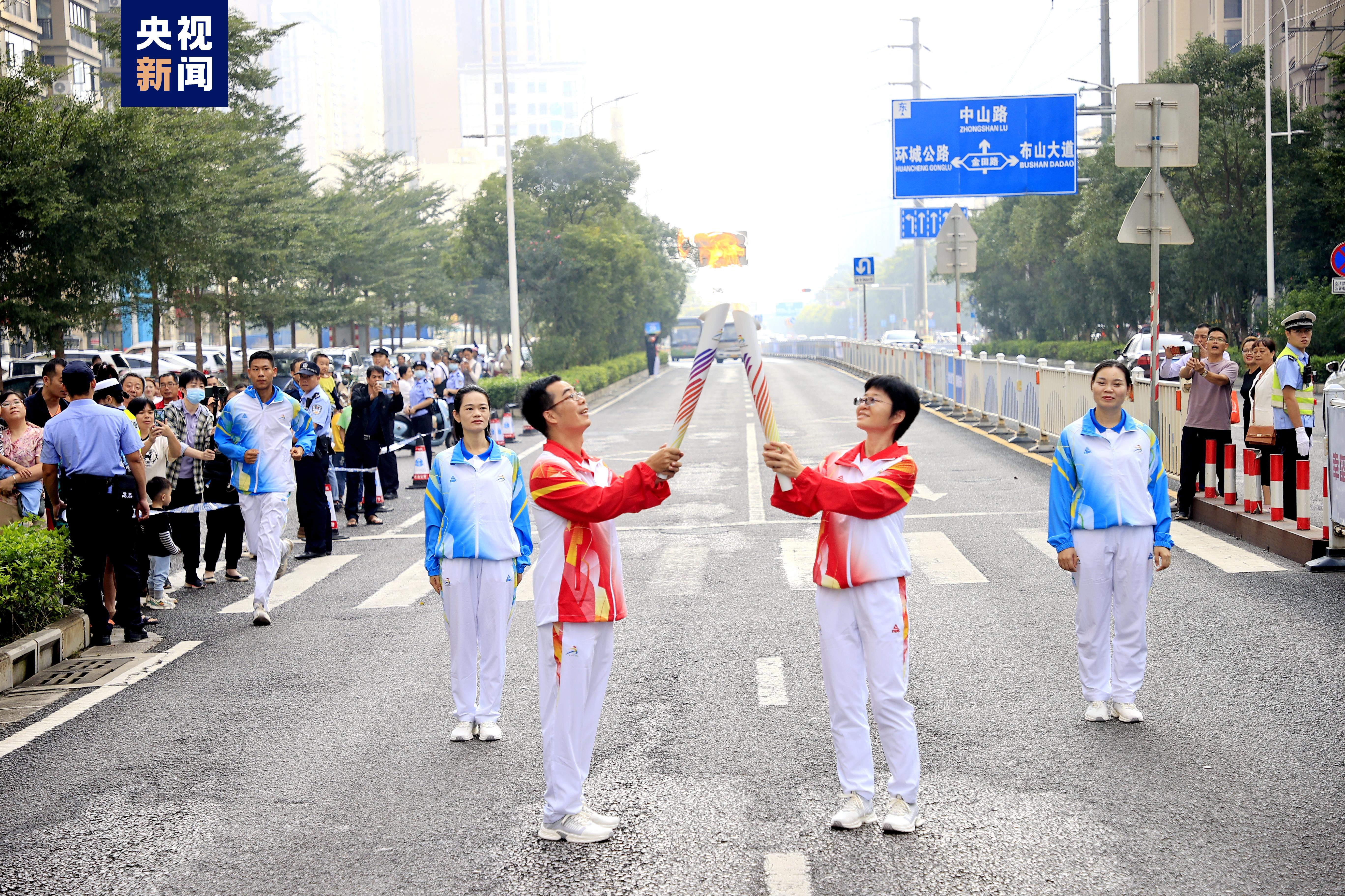 11月4日上午,第一屆全國學(xué)生(青年)運(yùn)動會火炬在貴港傳遞。
