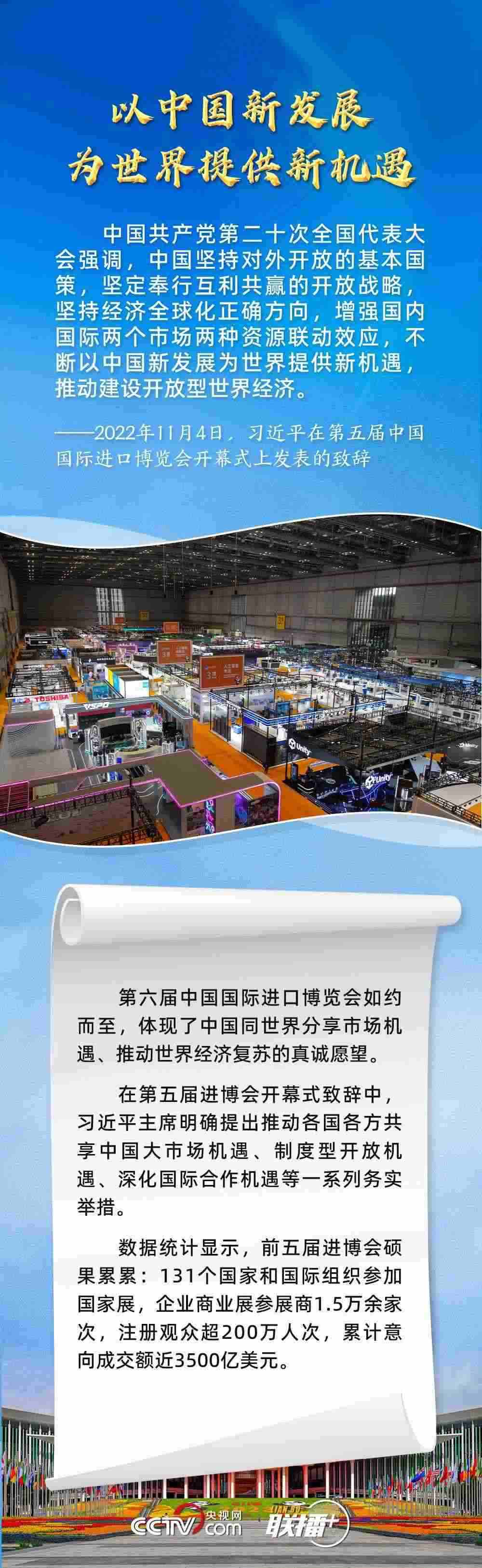 11月5日,第六屆中國(guó)國(guó)際進(jìn)口博覽會(huì)在上海開(kāi)幕。習(xí)近平主席在致信中指出,2018年以來(lái),進(jìn)博會(huì)成功舉辦五屆,依托中國(guó)大市場(chǎng)優(yōu)勢(shì),發(fā)揮國(guó)際采購(gòu)、投資促進(jìn)、人文交流、開(kāi)放合作平臺(tái)功能,對(duì)加快構(gòu)建新發(fā)展格局和推動(dòng)世界經(jīng)濟(jì)發(fā)展作出了積極貢獻(xiàn)。
