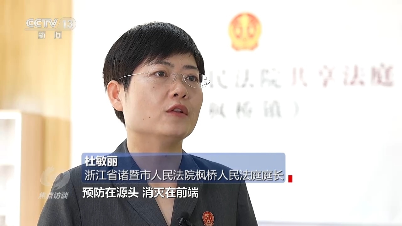 浙江省諸暨市人民法院楓橋人民法庭庭長(zhǎng)杜敏麗:“把后端力量移到了前端,把更多矛盾糾紛預(yù)防在源頭、消滅在前端,后面的訴訟相當(dāng)于案件量也慢慢減少?!?/p>