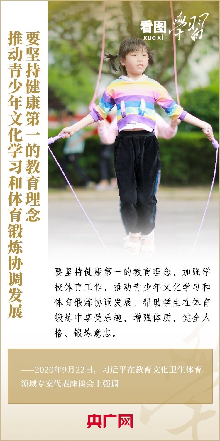 少年強(qiáng)則中國強(qiáng),體育強(qiáng)則中國強(qiáng)。習(xí)近平總書記十分關(guān)心關(guān)注青少年健康成長,多次強(qiáng)調(diào)要堅(jiān)持健康第一的教育理念,加強(qiáng)學(xué)校體育工作,推動(dòng)青少年文化學(xué)習(xí)和體育鍛煉協(xié)調(diào)發(fā)展。一起來學(xué)習(xí)!