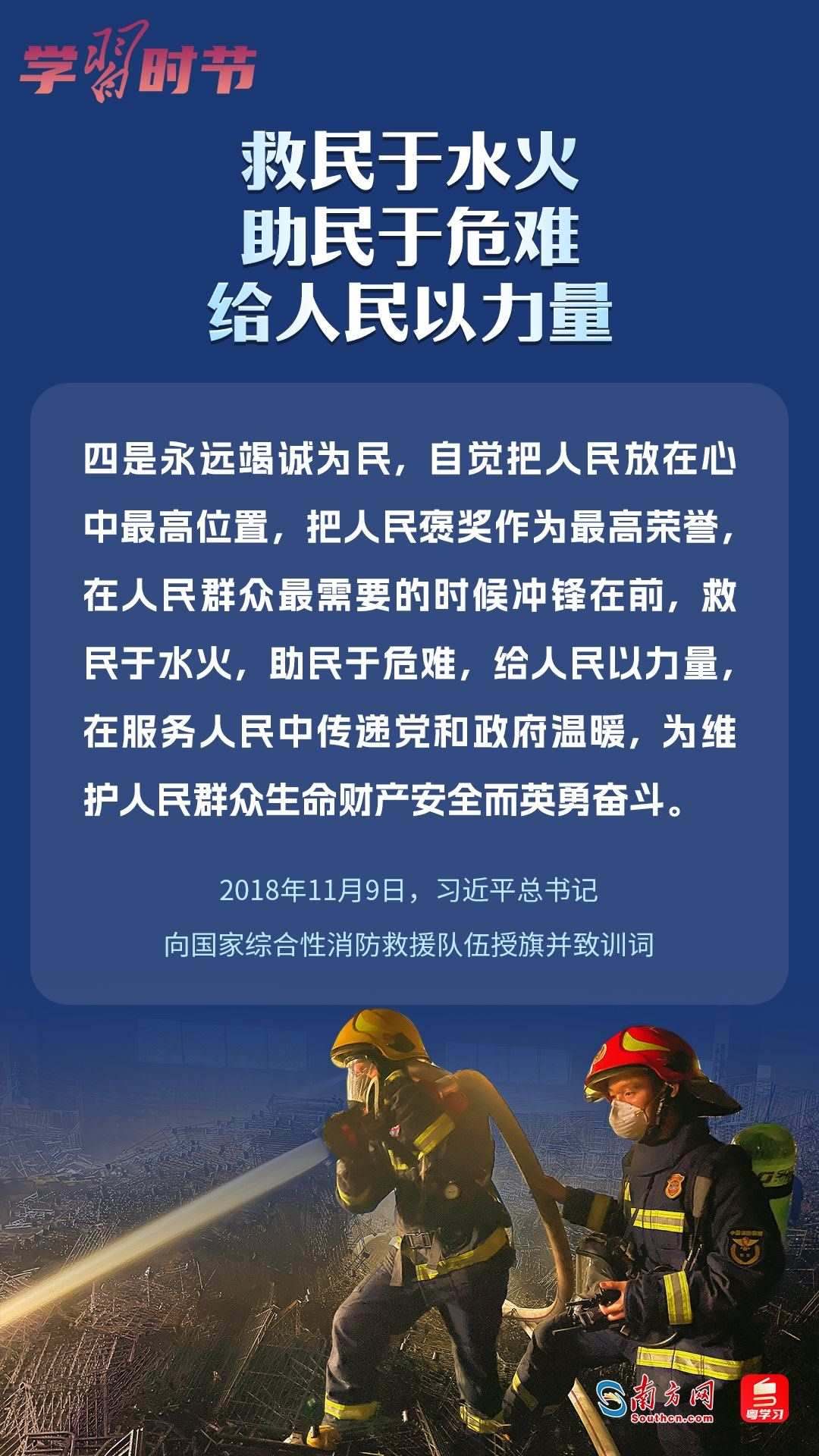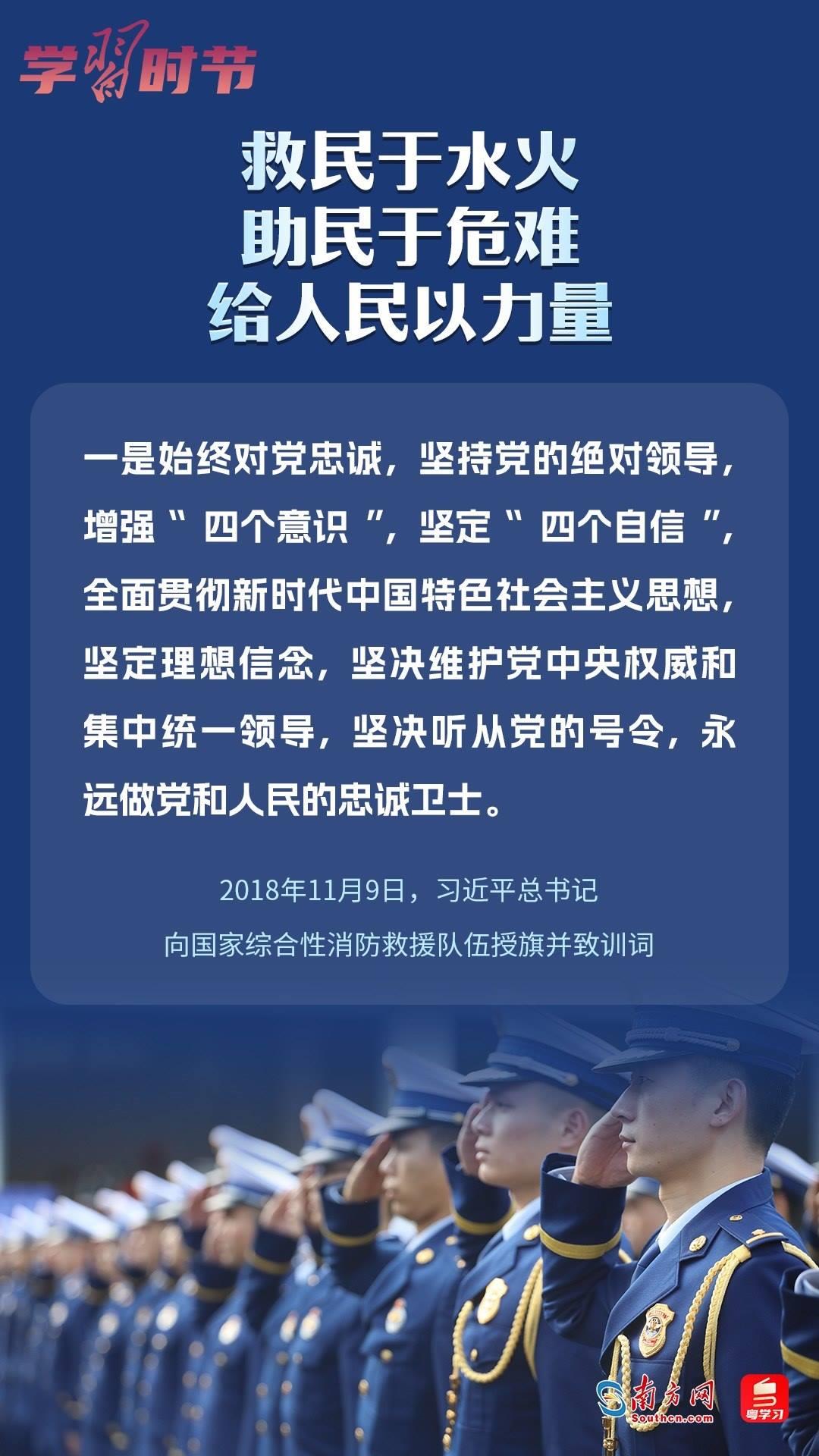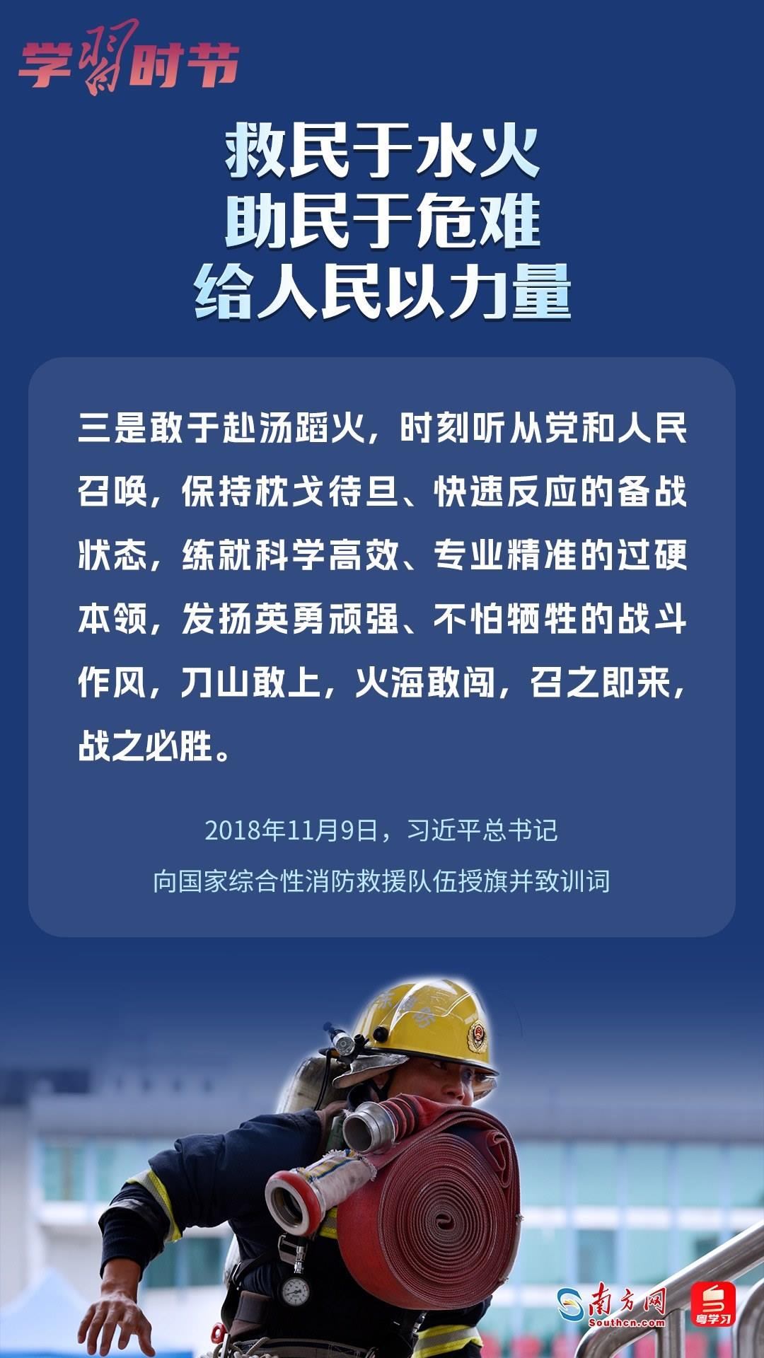 今年11月9日是習(xí)近平總書記為國(guó)家綜合性消防救援隊(duì)伍授旗并致訓(xùn)詞五周年,也是全國(guó)消防日。讓我們一起重溫總書記重要訓(xùn)詞,感受總書記對(duì)百姓安危的深情牽掛和對(duì)“火焰藍(lán)”的殷切期望。