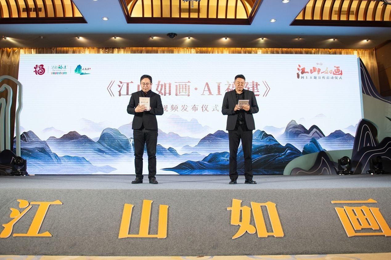 啟動(dòng)儀式上,中國(guó)新聞社融媒體中心副主任、中國(guó)新聞網(wǎng)副總編輯宋方燦攜手清華大學(xué)新聞與傳播學(xué)院元宇宙文化實(shí)驗(yàn)室負(fù)責(zé)人杭凱共同發(fā)布“江山如畫·AI福建”,以人工智能方式描繪充滿活力與包容的福建。