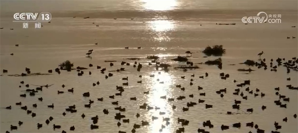 ?????? 眼下正是候鳥南遷的季節(jié),在內(nèi)蒙古鄂爾多斯市黃河流經(jīng)沿岸,聚集了大批南遷候鳥,其中有天鵝、蒼鷺、赤麻鴨、綠頭鴨等10多個(gè)種類,它們或是在水中和岸上悠然地休憩,或是聚精會神地飽餐一頓,或是振翅在空中翱翔。在落日余暉的映襯下,一派和諧靈動(dòng)的生態(tài)畫卷躍然眼前。