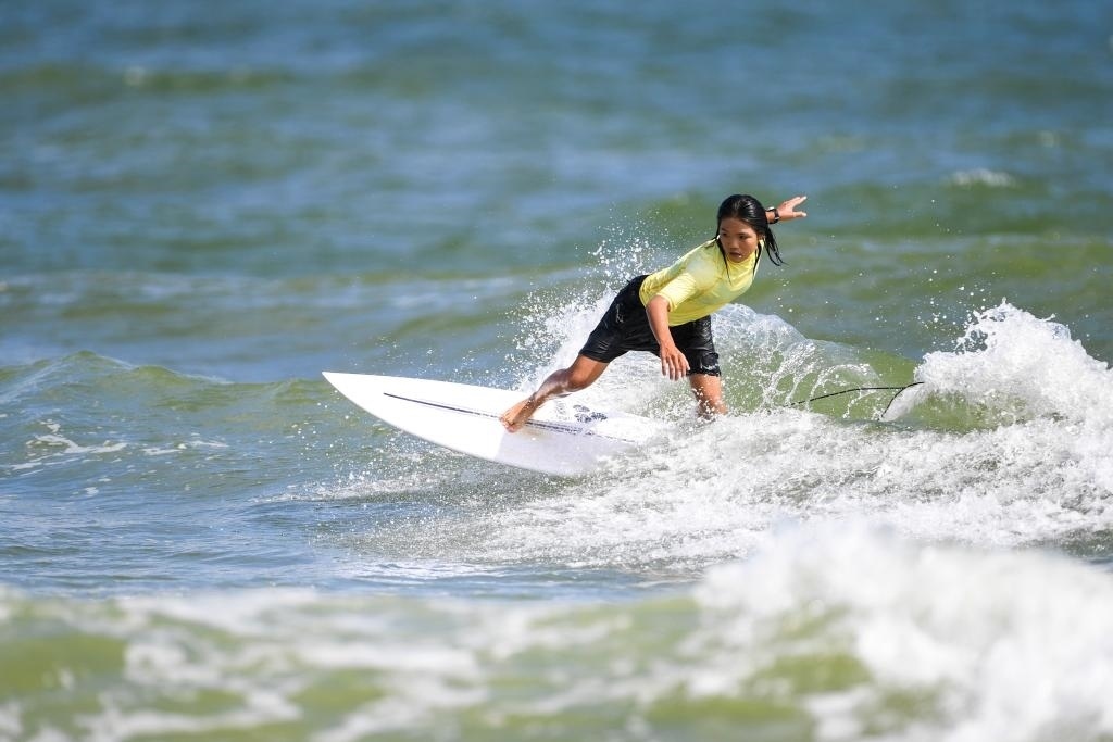 7月12日,第一屆全國(guó)學(xué)生(青年)運(yùn)動(dòng)會(huì)沖浪項(xiàng)目女子短板決賽在廣西北海市舉行。新華社記者 曹祎銘 攝