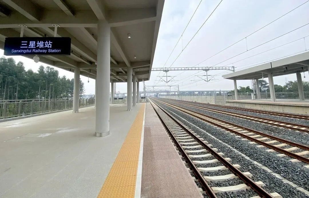三星堆站位于廣漢市南興鎮(zhèn)與向陽鎮(zhèn)交界處,距離三星堆遺址約5公里。