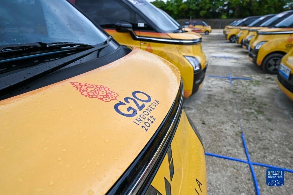 這是2022年11月12日在印度尼西亞巴厘島二十國(guó)集團(tuán)(G20)領(lǐng)導(dǎo)人第十七次峰會(huì)主會(huì)場(chǎng)拍攝的五菱新能源車(chē)。新華社記者 徐欽 攝