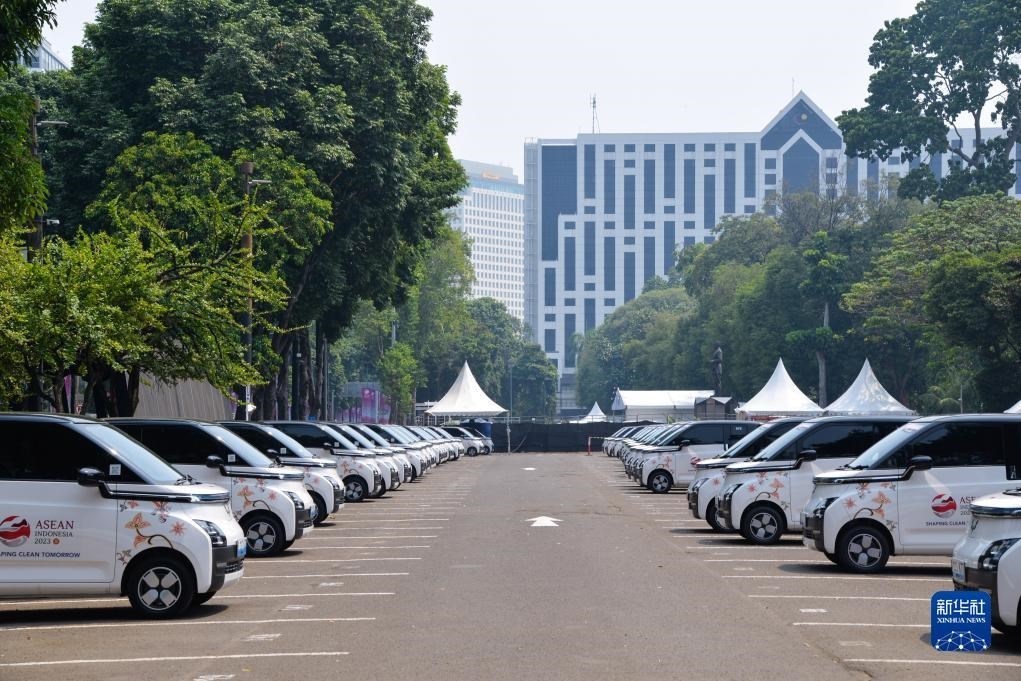 這是9月6日在印度尼西亞雅加達(dá)第43屆東盟峰會(huì)會(huì)場(chǎng)外拍攝的五菱新能源車(chē)Air ev。新華社記者 徐欽 攝