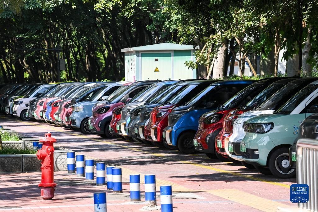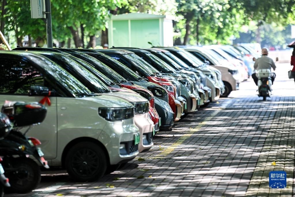 這是在廣西柳州市街頭拍攝的一處新能源汽車(chē)專(zhuān)用停車(chē)區(qū)(10月16日攝)。新華社記者 曹祎銘 攝