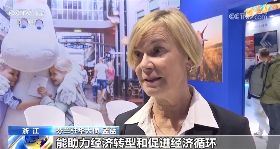 芬蘭駐華大使 孟藍:這次我們來了18家芬蘭公司,相信能創(chuàng)造很多可能性,增加數(shù)字貿(mào)易合作,對我們所有人而言,能助力經(jīng)濟轉(zhuǎn)型和促進經(jīng)濟循環(huán)。