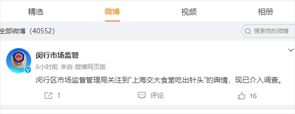 ·上海交通大學回應“食堂飯菜里吃出1.5厘米針頭”:給豬打疫苗的針斷在骨頭里。上海閔行區(qū)市場監(jiān)督管理局已介入調查。
