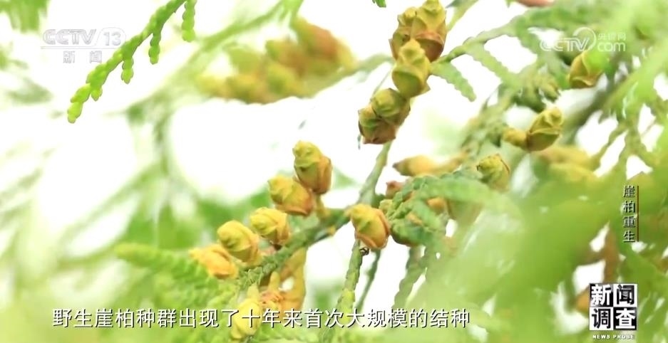 中國林科院森林生態(tài)環(huán)保所二級研究員 郭泉水:自從2012年崖柏群體結(jié)實(shí)以來,間隔十年,發(fā)現(xiàn)的規(guī)模比較大的一次崖柏結(jié)實(shí),應(yīng)該對于我們雪寶山來說是一件大事。把我們能采到的一些種子收集起來,然后在育苗的溫室,大棚里面育出小苗,再把小苗回歸到崖柏群落里面。