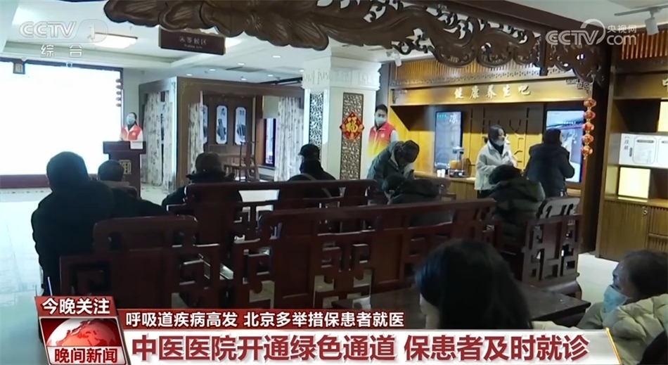 中醫(yī)醫(yī)院也在應(yīng)對呼吸道疾病就診高峰方面推出多項(xiàng)舉措。在北京市鼓樓中醫(yī)醫(yī)院,記者在候診區(qū)看到,醫(yī)務(wù)人員正在給現(xiàn)場候診和取藥的患者進(jìn)行預(yù)防流感的醫(yī)學(xué)講解。醫(yī)院還對有需求的老人開通綠色通道,及時收入醫(yī)院治療。