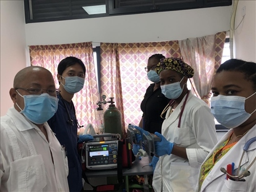 從多米尼克歷史上第一例臨時起搏器植入術(shù),到開展第一例動態(tài)心電圖監(jiān)測、第一例動態(tài)血壓監(jiān)測,再到制定當(dāng)?shù)厥讉€急性ST段抬高型心肌梗死溶栓的標(biāo)準(zhǔn)搶救流程,本該用幾十年走完的長路被濃縮在三年里。