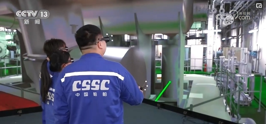 總臺央視記者 吳天白:如今造船靠的就是這艘“數(shù)字樣船”,戴上3D眼鏡便置身于一艘液化氣船的機艙,不僅能將船艙內(nèi)的情況盡收眼底。數(shù)字化工具就像庖丁解牛,把船舶這個巨系統(tǒng)拆解得清清楚楚,整合得天衣無縫,從而提升設計、制造的效率。
