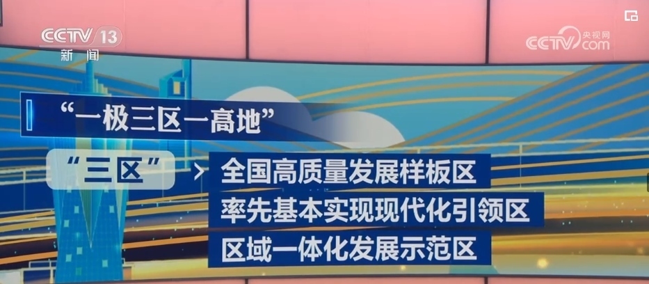 其中,“一極”就是全國(guó)發(fā)展強(qiáng)勁活躍增長(zhǎng)極,“三區(qū)”指的是全國(guó)高質(zhì)量發(fā)展樣板區(qū)、率先基本實(shí)現(xiàn)現(xiàn)代化引領(lǐng)區(qū)、區(qū)域一體化發(fā)展示范區(qū),而“一高地”則是指新時(shí)代改革開放新高地。