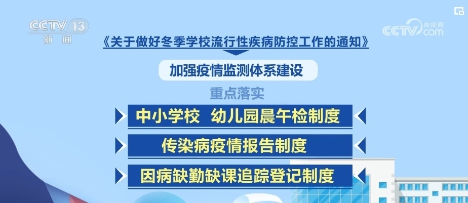 央視網(wǎng)消息:教育部12月5日發(fā)出通知,部署各地教育行政部門和學(xué)校切實(shí)做好冬季流行性疾病防控工作,保障師生健康和正常教育教學(xué)秩序。