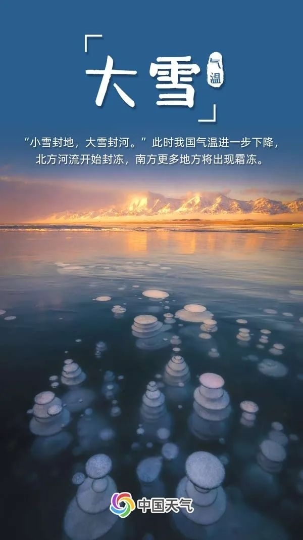 北方地區(qū)在大雪時節(jié)往往已進入隆冬時節(jié),不少地方已經(jīng)是一派銀裝素裹的景象,河水也開始封凍。南方也有更多地方最低氣溫跌破冰點,開始出現(xiàn)霜凍。