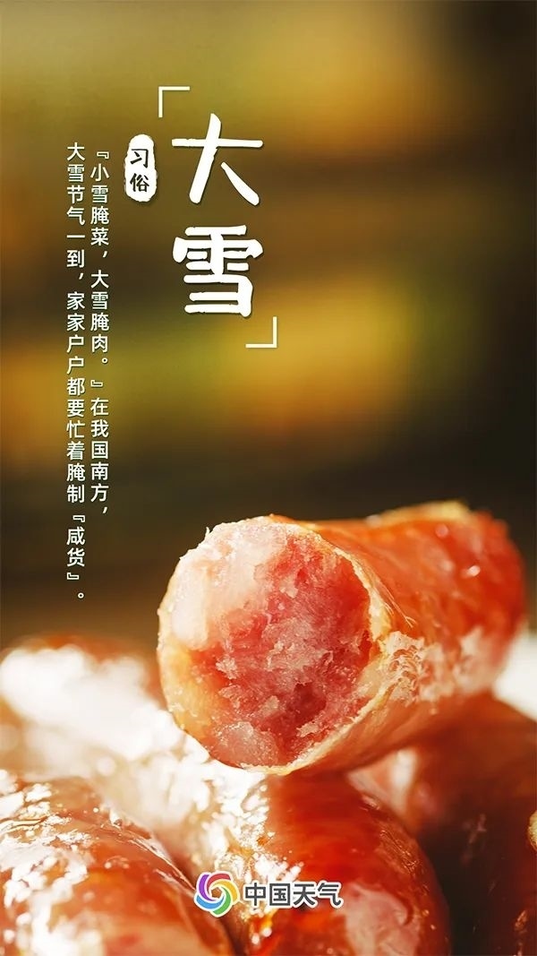 大雪節(jié)氣一到,北方多地也迎來了一年一度的冰雪旅游季。賞雪景、觀冰燈,雪場馳騁、冰場嬉戲,寒冷的冬天也多了奇妙樂趣。而在南方,“小雪腌菜,大雪腌肉”,此時,家家戶戶都要忙著腌制“咸貨”,用傳統(tǒng)的制作方法,將新鮮的原料加工成香氣襲人的美食,以迎接即將到來的新年。