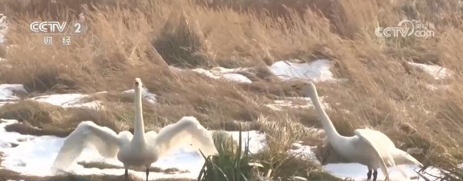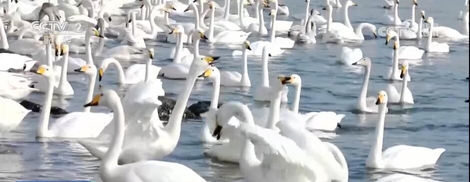 總臺記者 柳棟:我所在的位置是山東榮成大天鵝國家級自然保護(hù)區(qū),多年來這里形成了煙墩角、天鵝湖和櫻花湖三處大天鵝的集中區(qū)。今年遷徙的1萬多只大天鵝,目前九成以上已經(jīng)抵達(dá)這里,僅我所在的保護(hù)區(qū)范圍里就有超過6000多只。這里的工作人員告訴我,這些大天鵝是從3000多公里外的西伯利亞等地區(qū)長途飛行45天左右才能抵達(dá)的。飛抵后,大天鵝會在這里越冬,直到來年三四月份才會離開。因此,這里的大天鵝不再忙于練習(xí)飛翔和補(bǔ)充體力,而是從容不迫地開啟了度假模式,游客們也可以近距離與它們進(jìn)行互動(dòng)。
