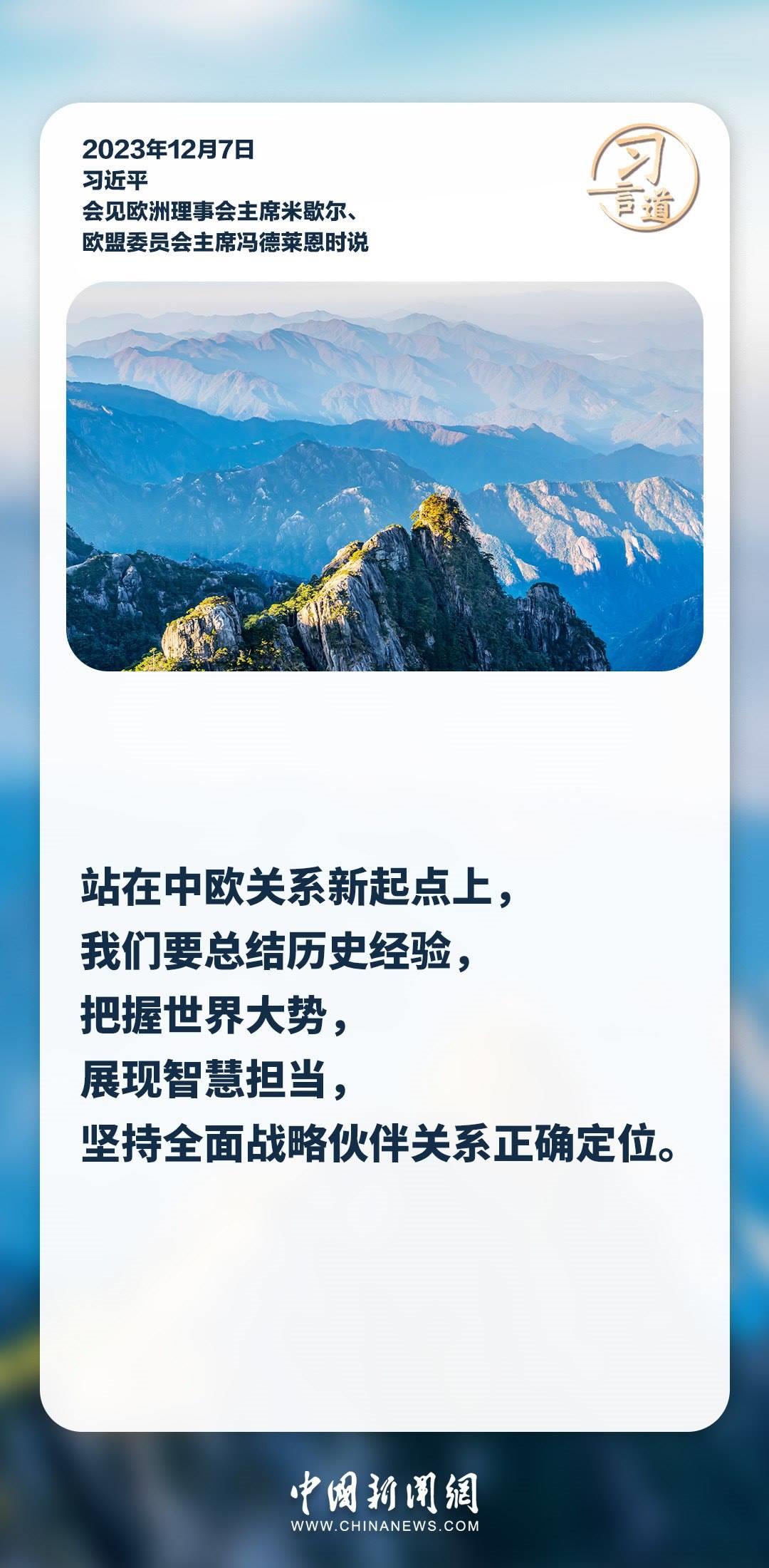 12月7日,國(guó)家主席習(xí)近平在釣魚(yú)臺(tái)國(guó)賓館會(huì)見(jiàn)來(lái)華舉行第二十四次中國(guó)—?dú)W盟領(lǐng)導(dǎo)人會(huì)晤的歐洲理事會(huì)主席米歇爾和歐盟委員會(huì)主席馮德萊恩。習(xí)近平說(shuō)——