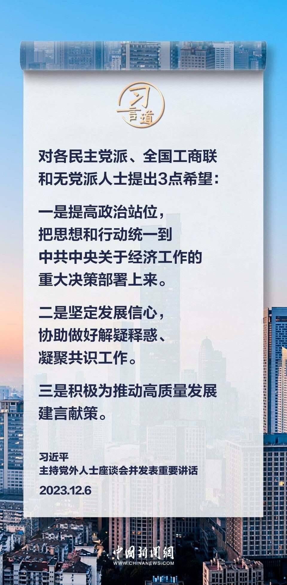 12月6日,中共中央在中南海召開黨外人士座談會(huì),就今年經(jīng)濟(jì)形勢(shì)和明年經(jīng)濟(jì)工作聽取各民主黨派中央、全國(guó)工商聯(lián)負(fù)責(zé)人和無(wú)黨派人士代表的意見和建議。中共中央總書記習(xí)近平主持座談會(huì)并發(fā)表重要講話。