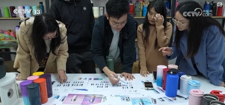 這兩天,王博文和設計團隊正在為即將在海外上線的新款保溫杯挑選顏色,等顏色確定就可以開始大批量的生產(chǎn)。