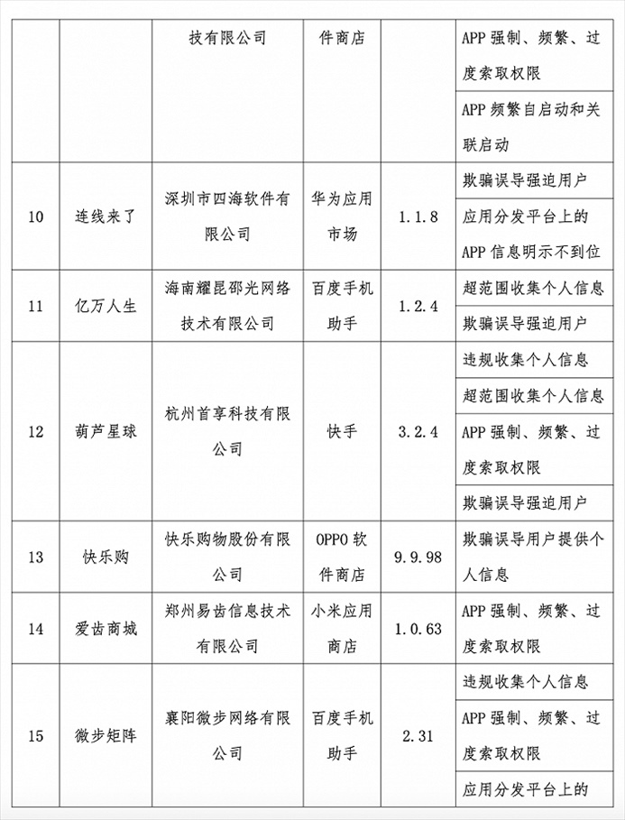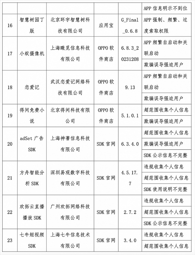 央視網(wǎng)消息:據(jù)工信部網(wǎng)站消息,近期,工信部組織第三方檢測機構(gòu)對群眾關(guān)注的實用工具、本地生活、網(wǎng)絡(luò)游戲等移動互聯(lián)網(wǎng)應(yīng)用程序(APP)及第三方軟件開發(fā)工具包(SDK)進(jìn)行檢查。發(fā)現(xiàn)24款A(yù)PP、SDK存在侵害用戶權(quán)益行為,現(xiàn)予以通報。