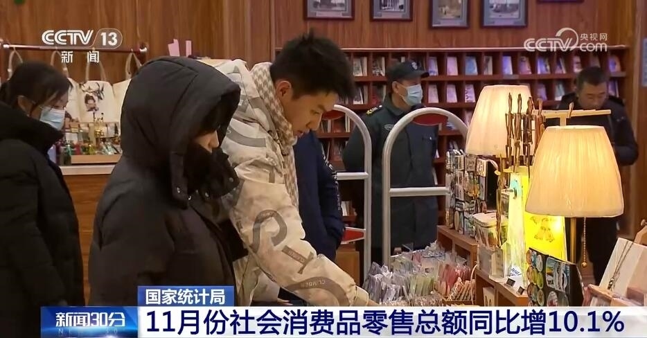 市場銷售增勢較好,服務消費持續(xù)較快增長,11月份,社會消費品零售總額同比增長10.1%,比上月加快2.5個百分點。