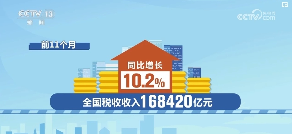 總體來看,11月當(dāng)月,全國稅收收入10579億元,同比增長3.2%。前11個(gè)月,全國稅收收入168420億元,同比增長10.2%。